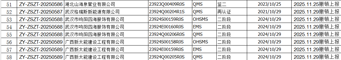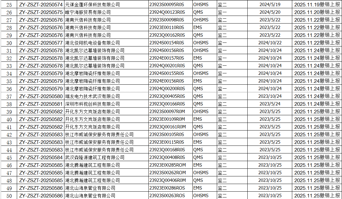 2025年12月份认证证书撤销名单