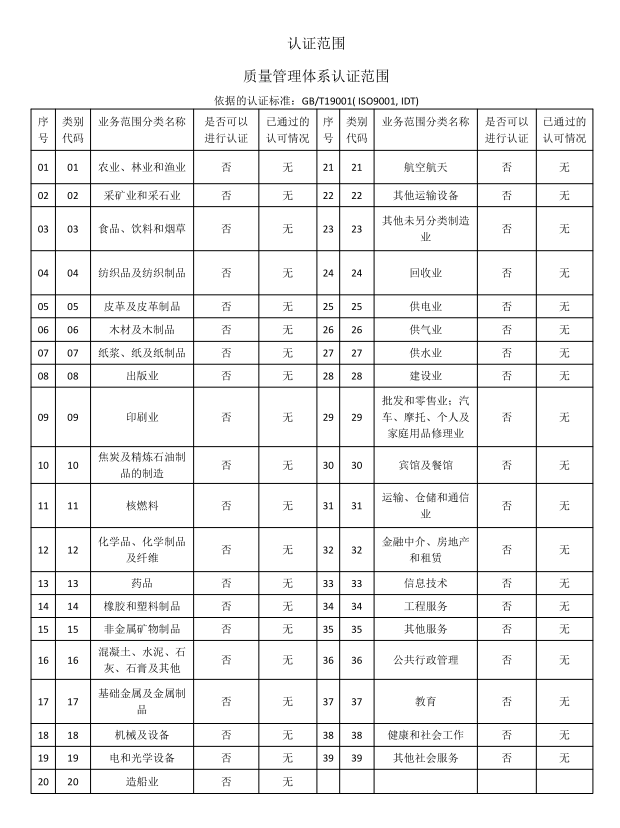 质量管理体系认证范围