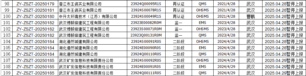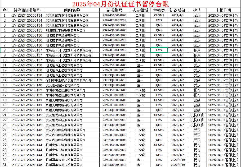 2025年4月份认证证书暂停名单