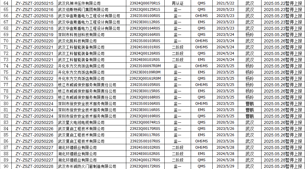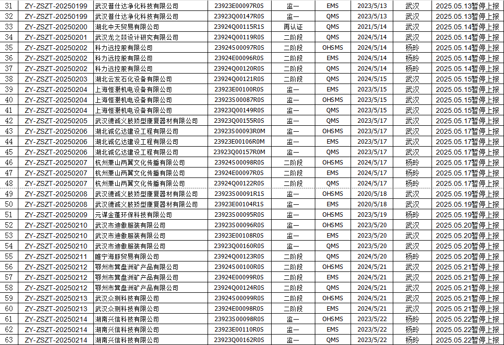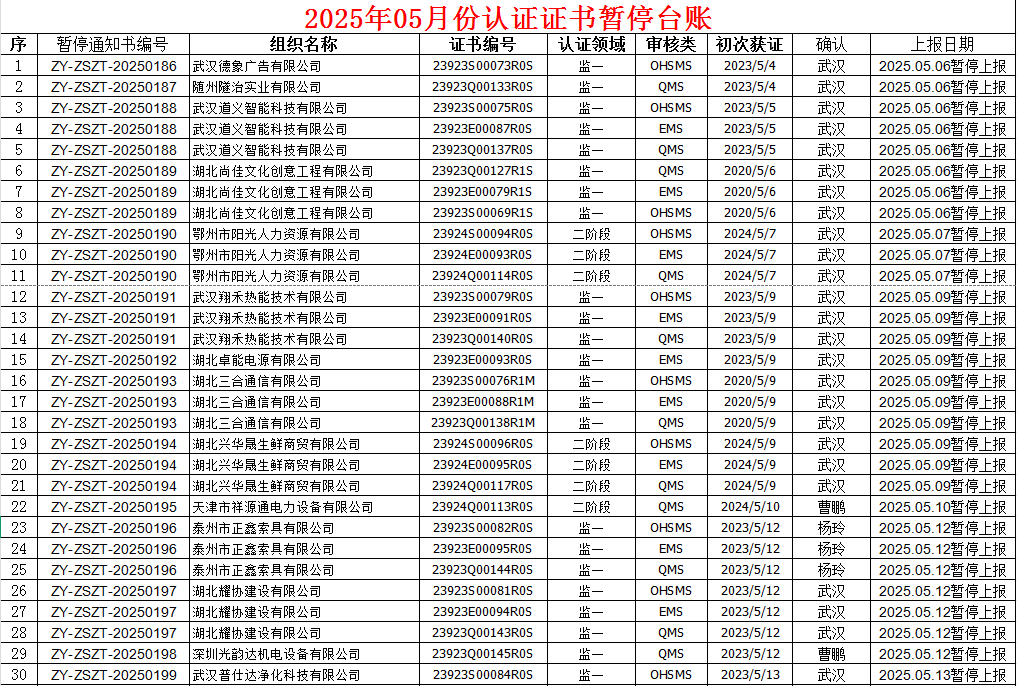 2025年5月份认证证书暂停名单