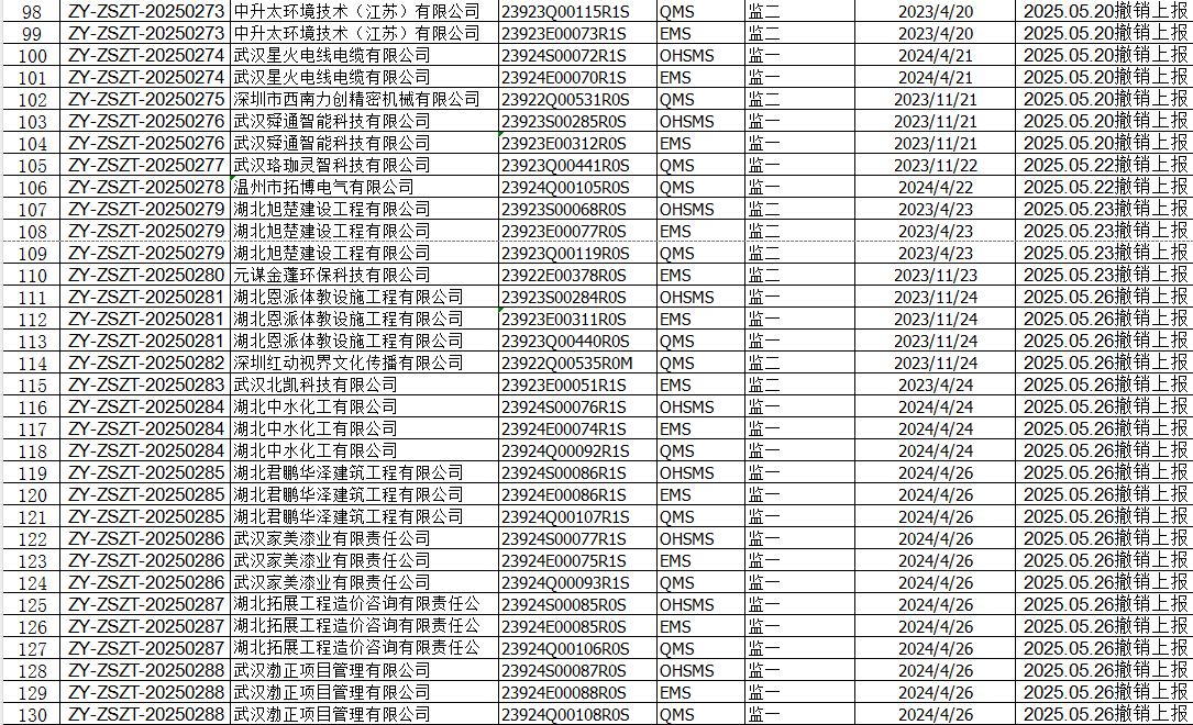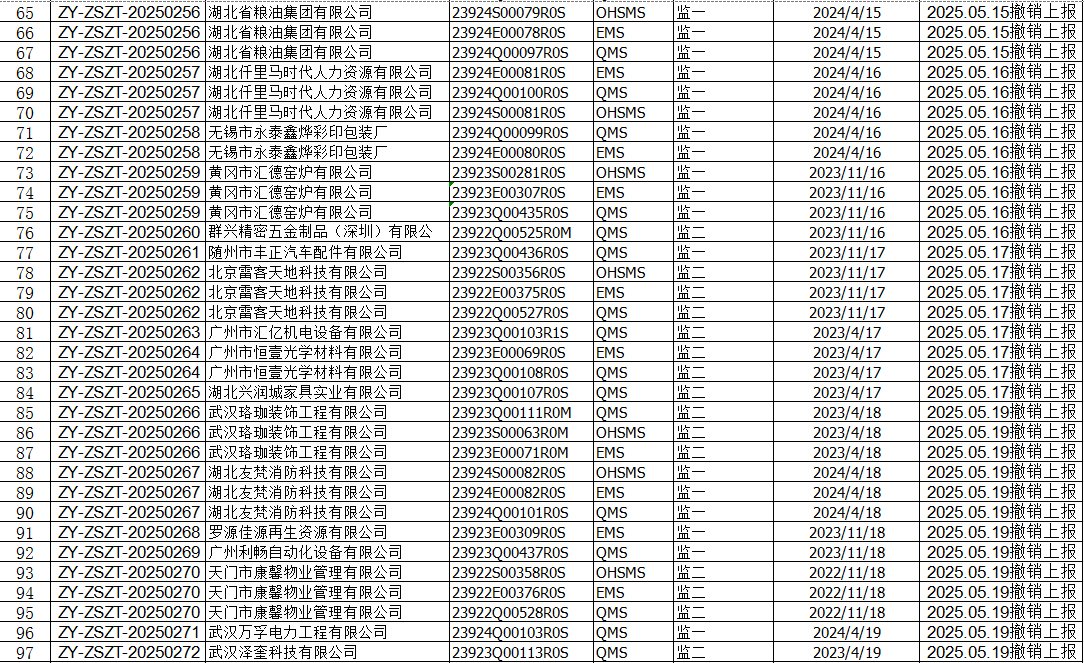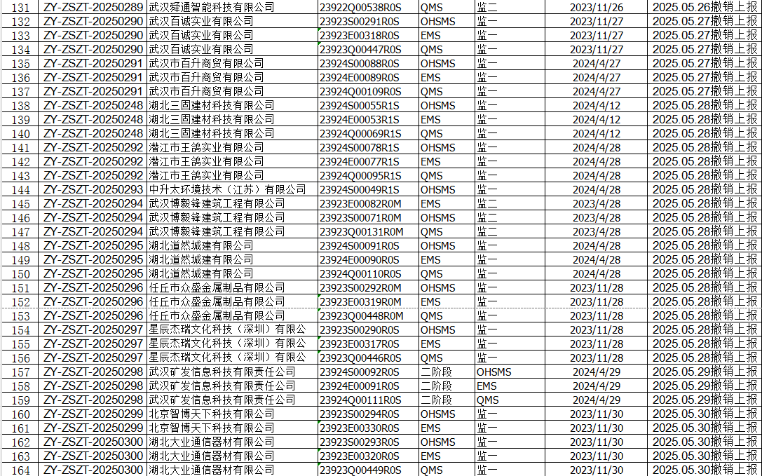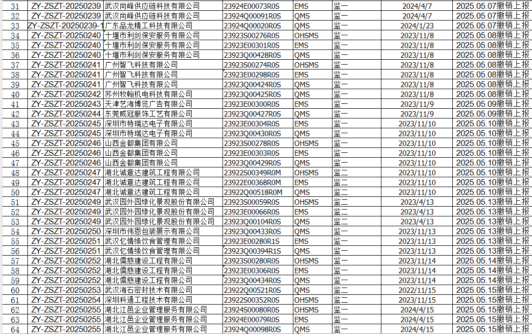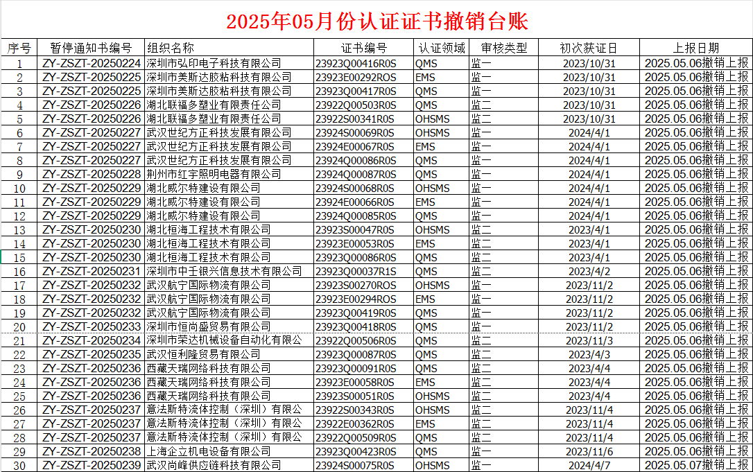 2025年5月份认证征书撤销名单
